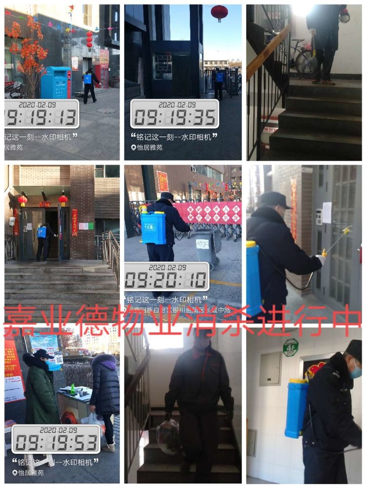 :物业员工每日三次进行消杀工作,对楼道、楼梯口、小区门口、垃圾桶旁等公共区域进行无死角消毒,积极对抗疫情防控工作!