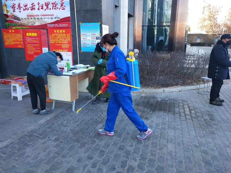 小区门口消杀工作进行中