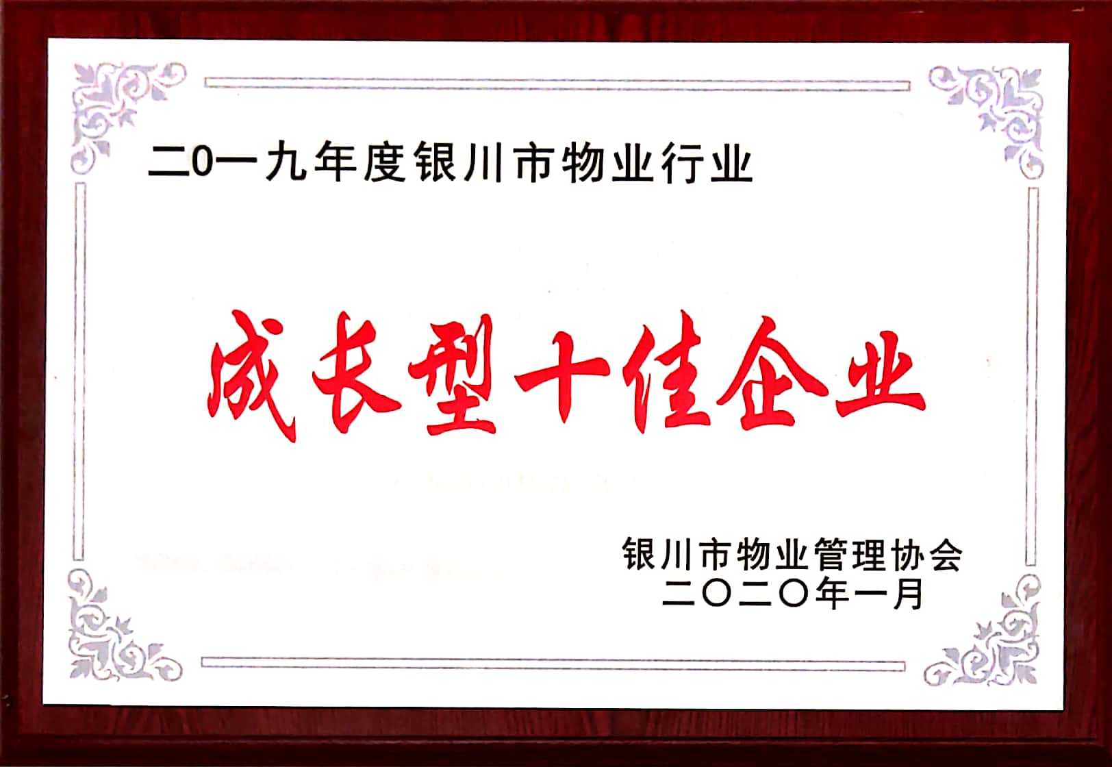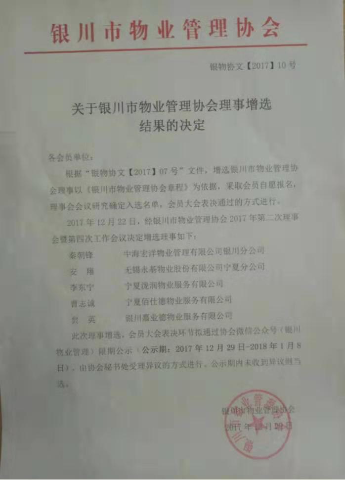 入围银川市物业管理协会理事单位