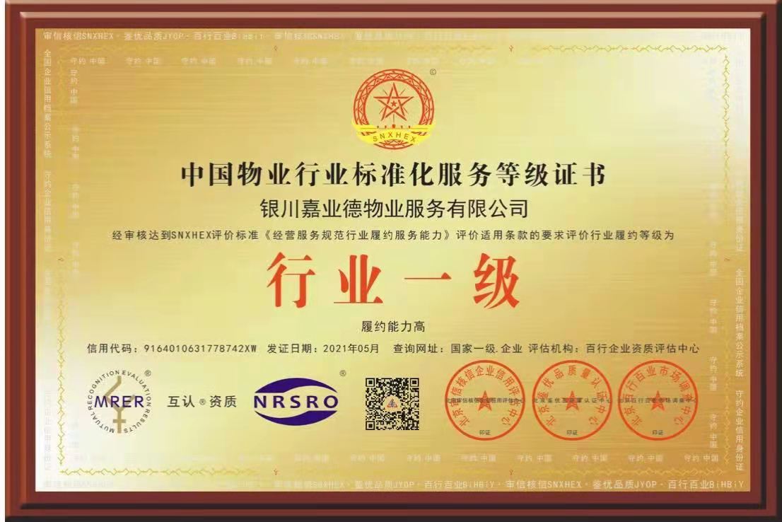 中国物业行业标准化服务等级证书-----行业一级